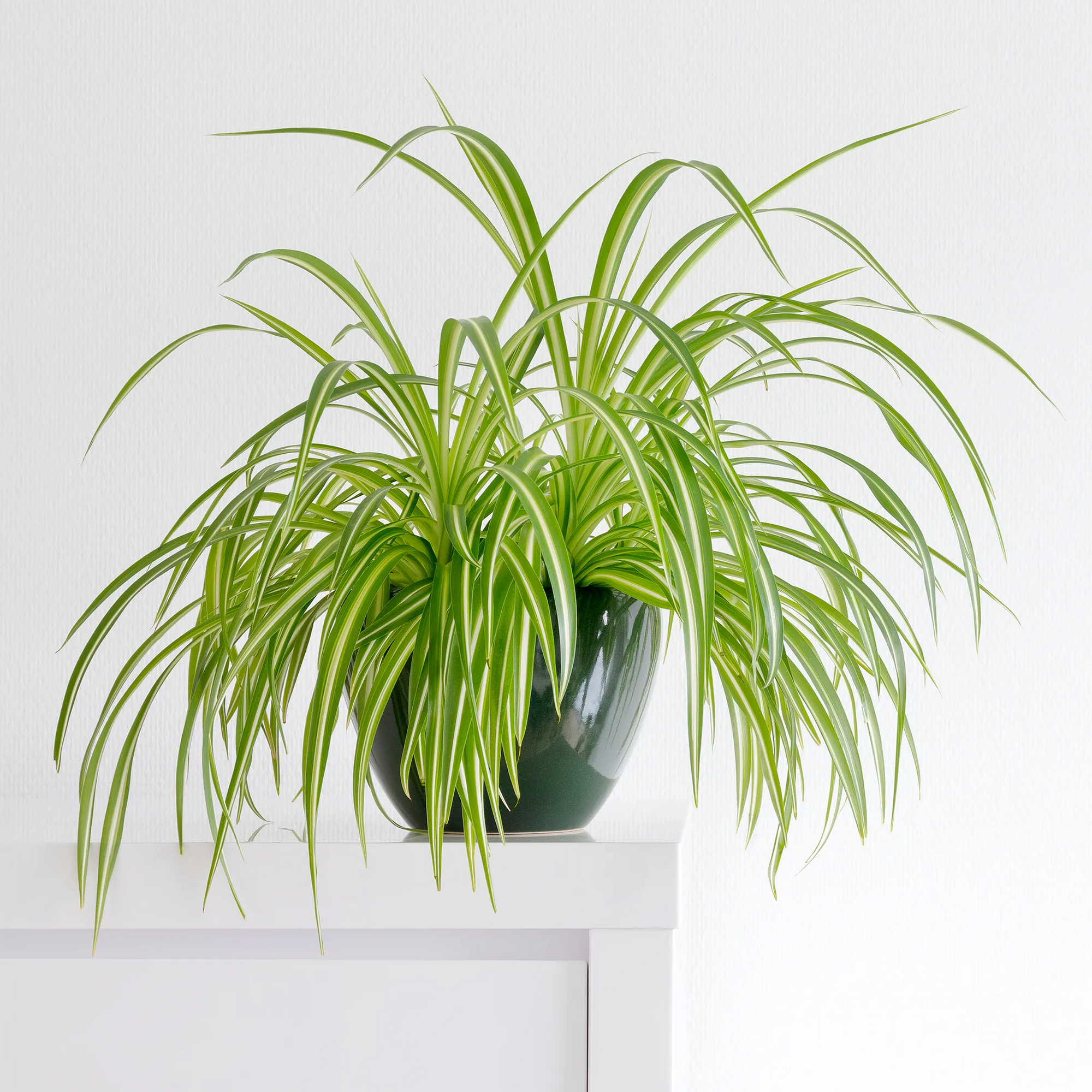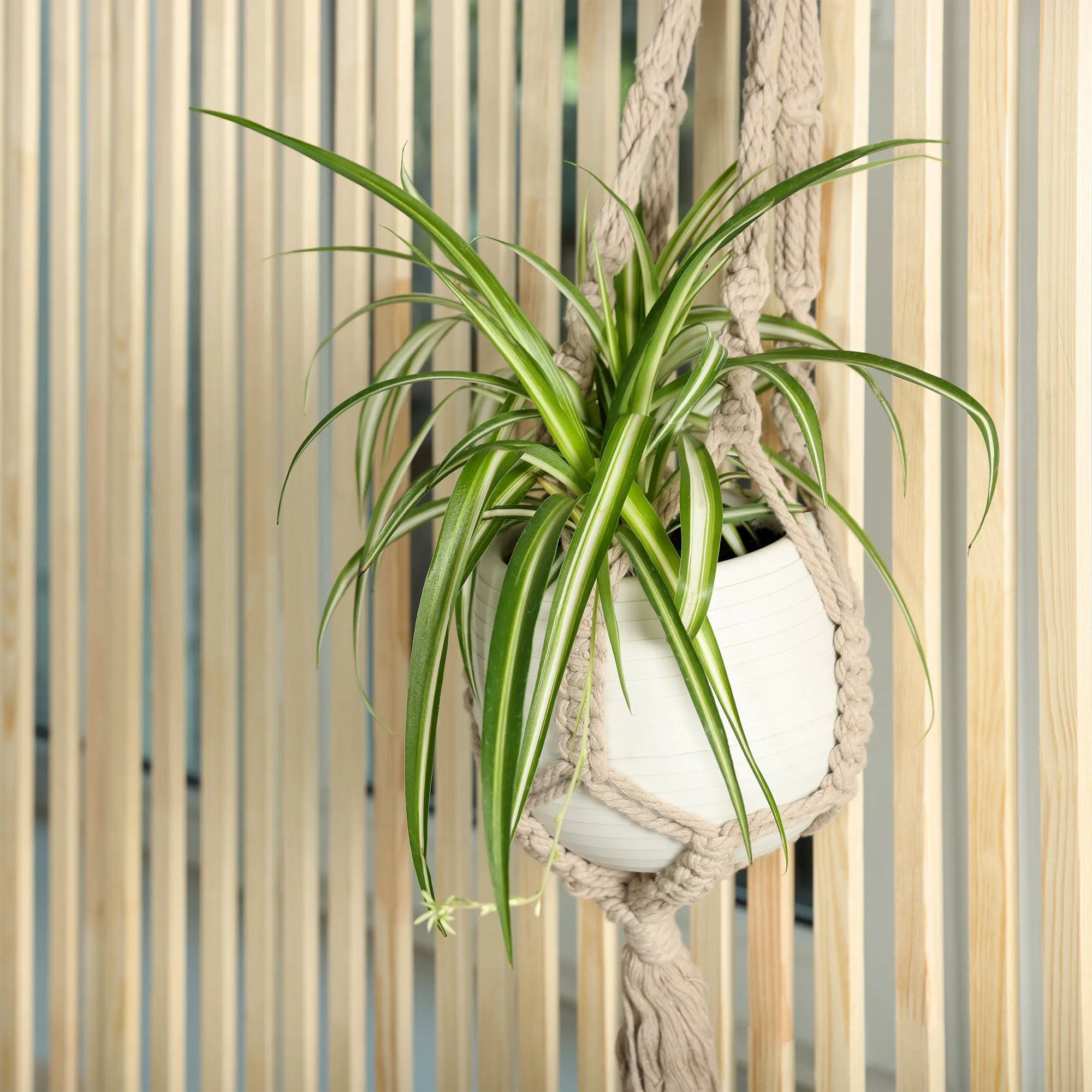 Chlorophytum comosum, allgemein bekannt als Grünlilie, ist eine beliebte Zimmerpflanze, die für ihre unkomplizierte Pflege und ihr lebendiges Aussehen geschätzt wird. Ihre langen, elegant überhängenden Blätter sind leuchtend grün mit cremefarbenen Streifen und verleihen ihr eine frische, freundliche Ausstrahlung. Mit der Zeit bildet die Pflanze lange Stängel mit kleinen weißen Blüten und herabhängenden Ablegern („Kindel“), die für einen üppigen, kaskadenartigen Effekt hängen bleiben oder leicht bewurzelt und zu neuen Pflanzen gezogen werden können. Diese Pflanze ist sehr anpassungsfähig und gedeiht bei mittlerem Licht, normaler Luftfeuchtigkeit und regelmäßigem Gießen, was sie ideal für Anfänger wie auch erfahrene Pflanzenliebhaber macht. Dank ihrer luftreinigenden Eigenschaften und Vielseitigkeit ist die Grünlilie besonders beliebt in Hängetöpfen in Wohnräumen, Küchen und Büros.