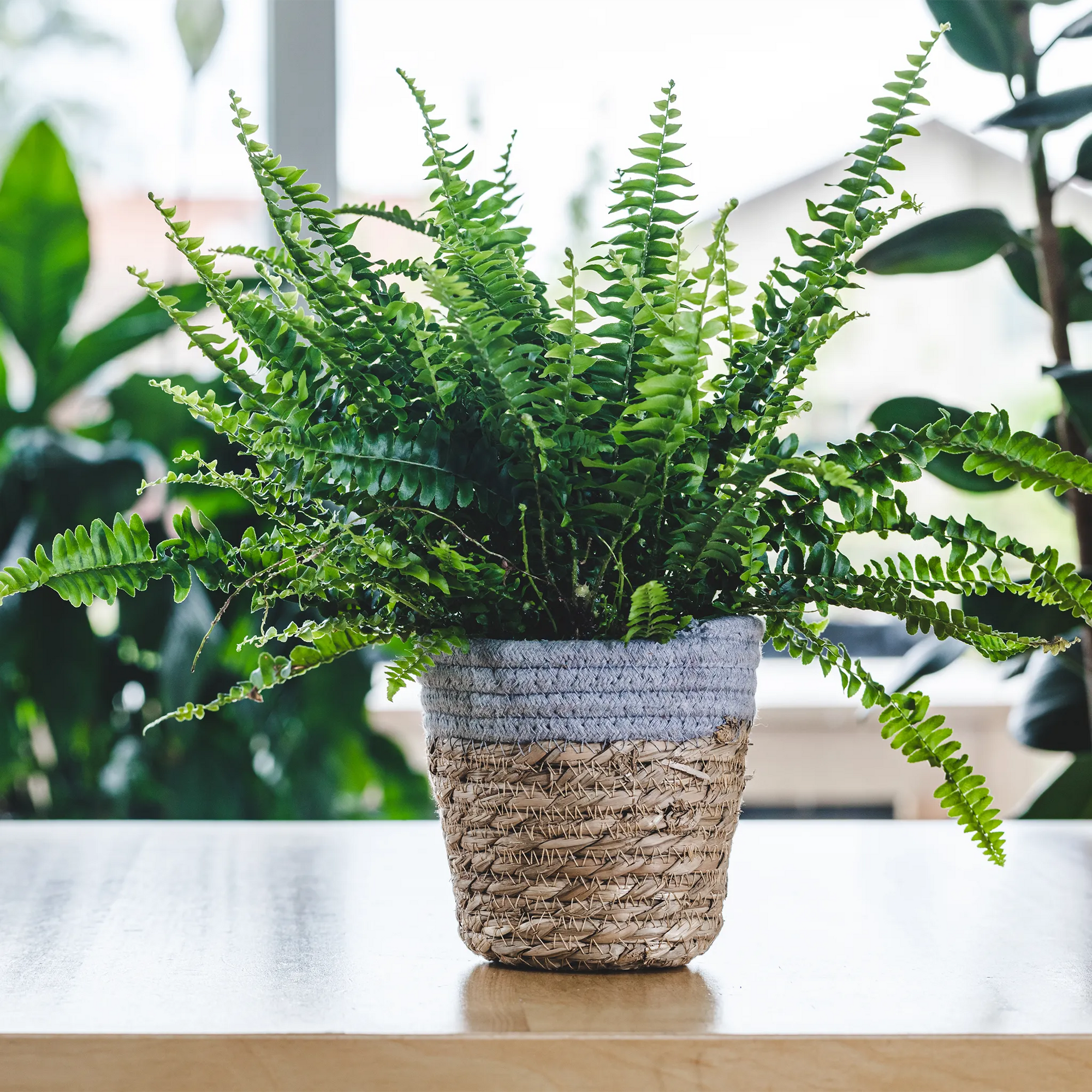 Le Nephrolepis exaltata, plus connu sous le nom de Fougère de Boston, est une plante d’intérieur classique appréciée pour ses frondes retombantes et plumeuses qui apportent douceur et élégance naturelle. Avec son feuillage dense, elle rafraîchit et décore les intérieurs, idéale dans des suspensions, sur des étagères ou des piédestaux. Elle prospère en sol constamment humide, avec une humidité élevée et une lumière indirecte, ce qui la rend parfaite pour la cuisine, la salle de bain ou un salon lumineux. Sans danger pour les animaux et purificatrice d’air, la Fougère de Boston allie beauté et bienfaits pratiques, restant un choix intemporel.