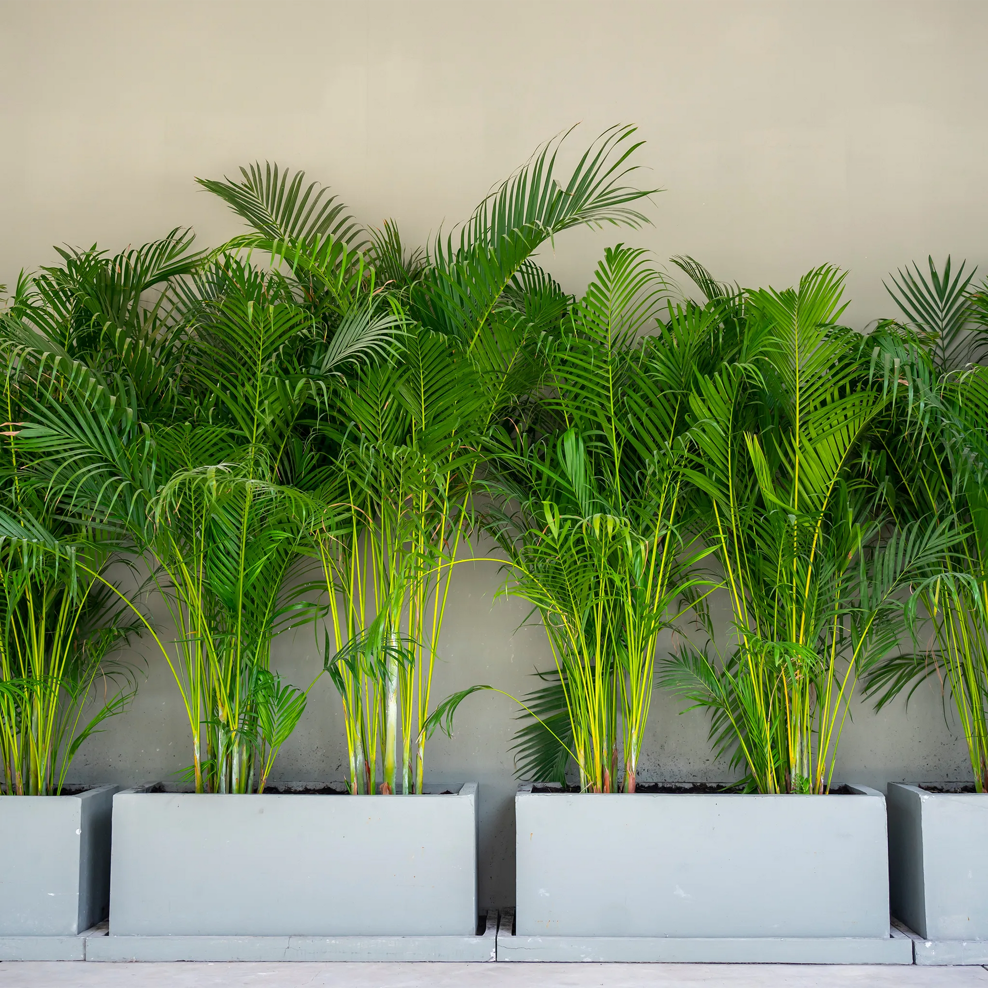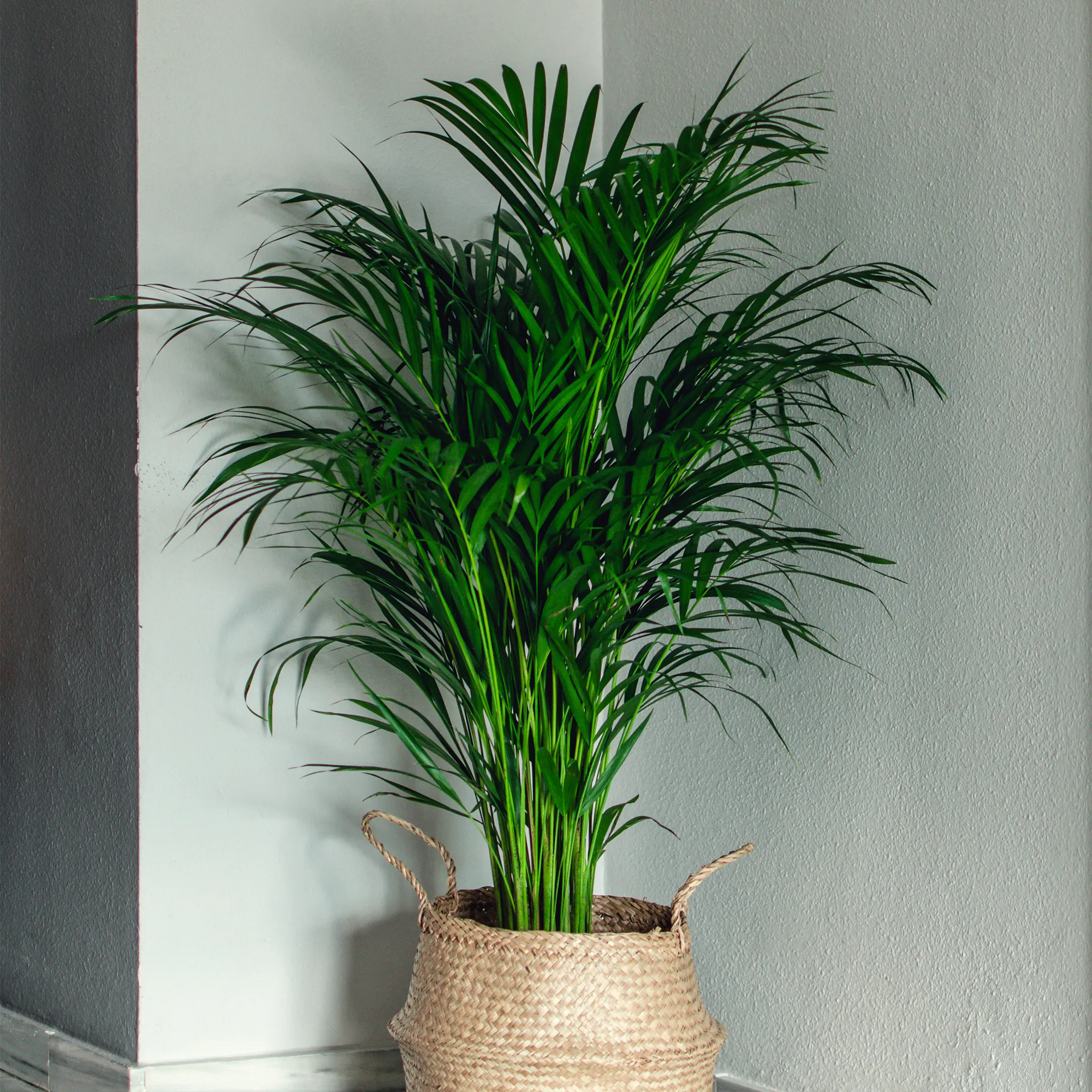 Dypsis lutescens, beter bekend als de Arecapalm of Vlinderpalm, is een van de populairste palmen voor binnendecoratie. De meerdere slanke stammen en sierlijk geveerde bladeren creëren een zachte, elegante uitstraling die interieurs meteen een tropische sfeer geeft. Naast zijn decoratieve waarde staat hij ook hoog aangeschreven als luchtzuiverende plant. De Arecapalm past zich goed aan binnenshuis aan en gedijt in helder, indirect licht, met matig water geven en gemiddelde luchtvochtigheid. Hoewel hij na verloop van tijd vrij groot kan worden, blijft hij goed hanteerbaar als duurzame kamerplant en fungeert hij in grotere ruimtes als een natuurlijke, groene afscheiding.